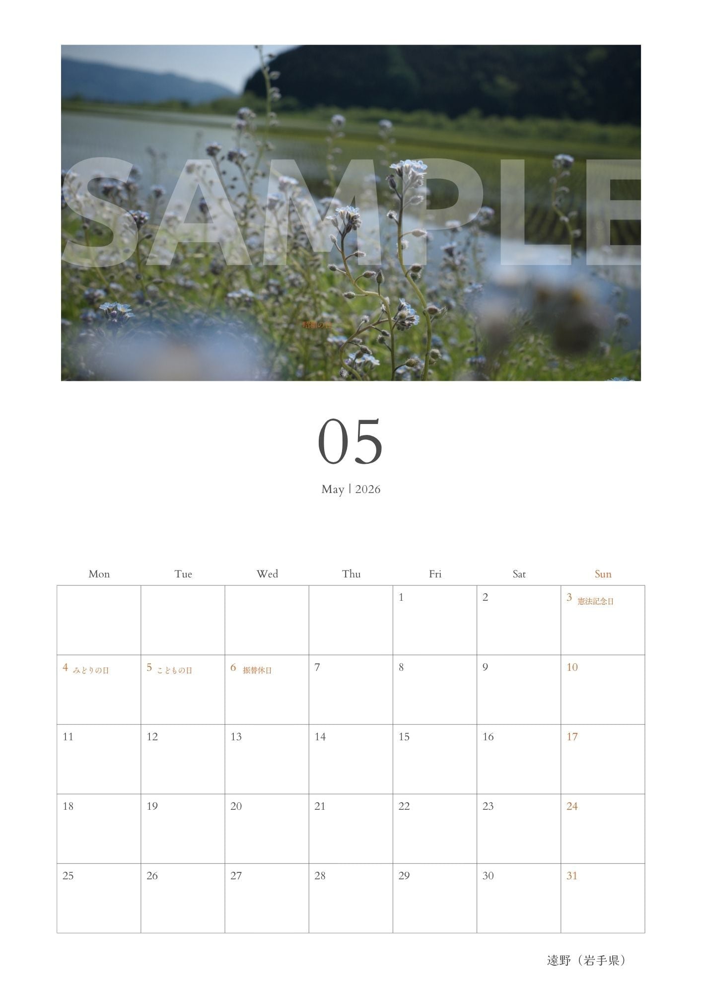 【毎月カレンダー・データ販売】2026年5月
